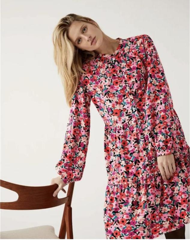 Яркое платье из вискозы M&S 16 размера. Состояние новой вещи. Платье очень красивое и яркое. Подойдет на размер 50-52-54, следует ориентироваться по замерам. Состав: 100% вискоза. ПО плечей- 46 см ПО груди- 59 см ПО талии- 55 см Длина от плеча до талии- 42 см Длина рукава- 62 см Длина изделия- 98 см