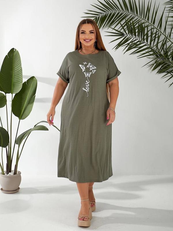 Сукня Розмір 52,54,56,58! Тканина: стрейч льон позаду резинки 52:ОГ 104 ОБ 108 довжина рукава 30 довжина виробу довжина виробу 120 54:ОГ 108 ОБ 112 довжина рукава 30 довжина виробу 120 56:ОГ 112 ОБ 114 довжина рукава 30 довжина виробу 120 58:ОГ 116 ОБ 118 довжина рукава 30 довжина виробу 120