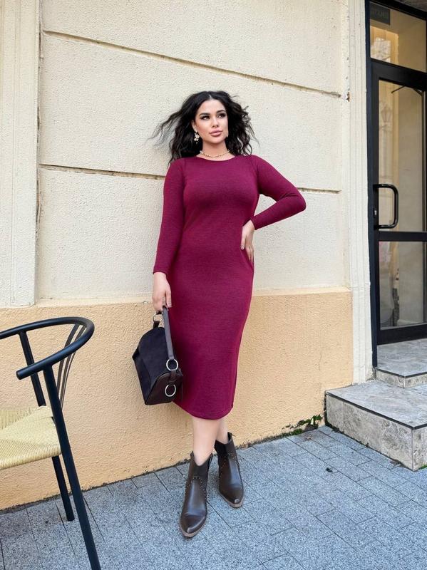 Модель 1120 Силуэтное платье, длина миди Размеры: 48-50 и 52-54 Тканина : ангора Замеры: 48-50 ОГ 108-110см, ОС 112-114см. 52-54 ОГ 114-116см, ОС 116-118см. Длина 125см. Длина рукава 65см.