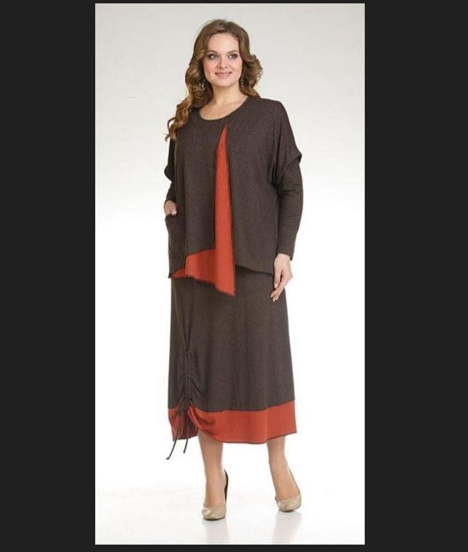 Комплект MILANA MODA 445 состоит из платья и накидки красивого шоколадного цвета . Комплект выполнен из теплого мягкого хорошо драпирующегося трикотажа, приятного к телу . Свободный крой визуально скроет все изъяны фигуры. Модель будет любимой в гардеробе ее обладательницы! Белорусское качество, отличные лекала. В наличии р 52 Подойдет на ОГ 102-110 см, на ОБ 108-116 см Длина платья 127 см Длина накидки 70-78 см. Комплект очень классный, легкий, стильный ,удобный . и главное в нем Вы будете индивидуальны! Вы однозначно останетесь довольны качеством изделия. В таком комплекте Вы всегда будете выглядеть привлекательно и чувствовать себя комфортно