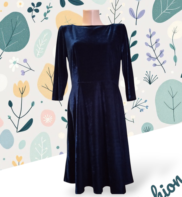 Платье темно синего цвета, бархатное, очень красивое. Классического стиля. Длина 95 см в груди 48 см полуобхват в талии 41 см, рукав 45 см. Эластичное, хорошо тянется.