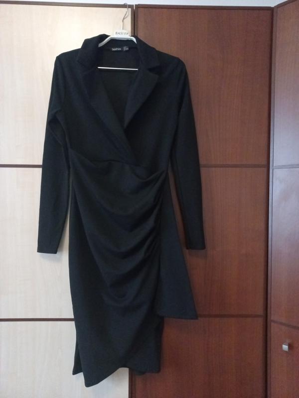 классическое черное платье с имитацией запаха, сбоку имеет драпировку