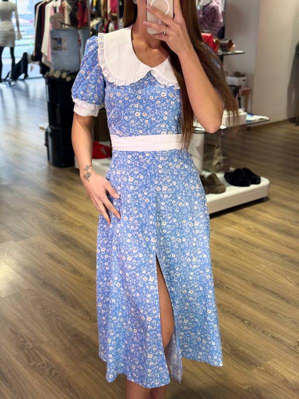 Жіноча літня сукня голуба блакитна з комірцем міді софт