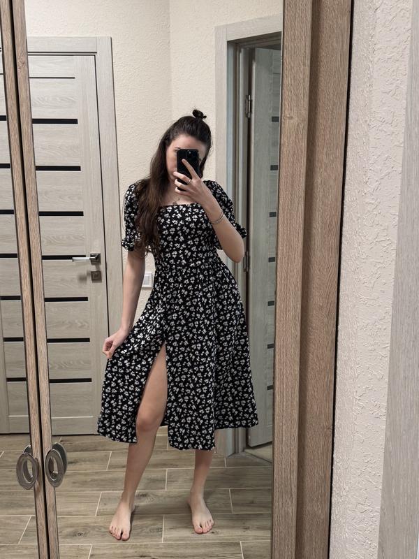 Нова літня сукня з біркою Розмір s Ззаду відкрита спинка, на завʼязках Сукня з розрізом на ніжці Можна приспустити плечі Сукня у квіточку