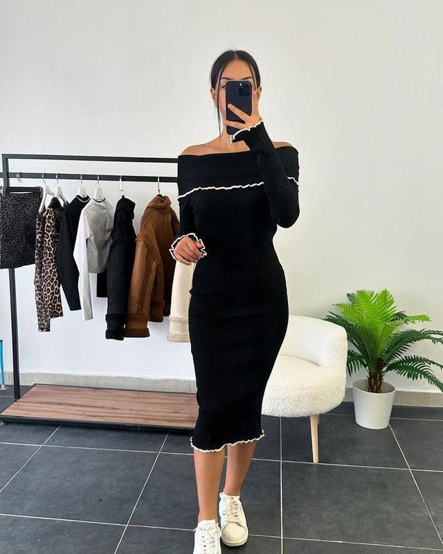 Сукня ❤️ 🔹Мод. 178 🔹Тканина: Трикотаж Рубчик 🔹Размеры: 42-44, 46-48 🔹Цвета: молочный, черный
