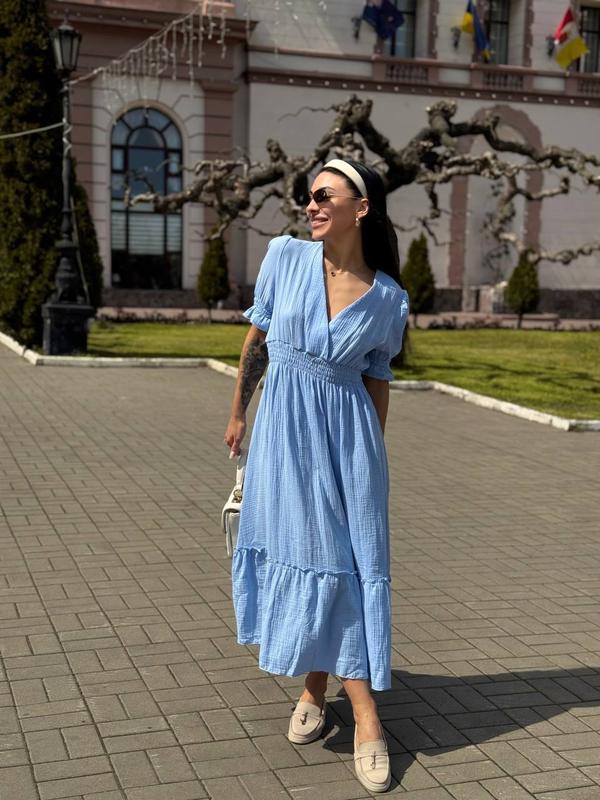 🥰Платье из натурального муслина придаст образу легкости и нежности. ✅размер: 42-44,46-48, 50-52 ✅Материал: Муслин 🎀Цвета: Молоко, розовый, голубой 💸Цена 1390грн Арт344Clo ‼️Сбор заказа 1-3дны