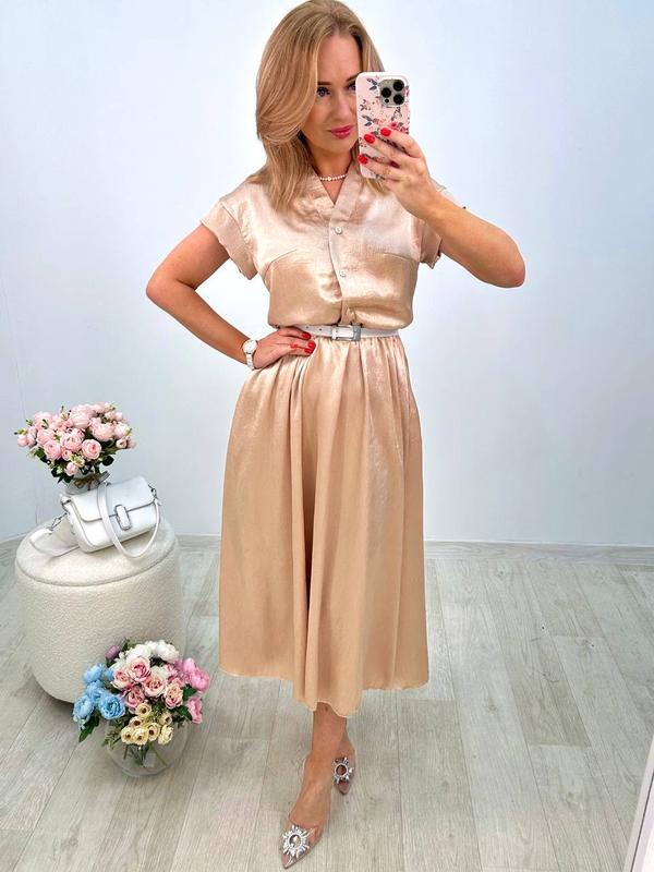 💕 НОВИНКА 💕 Сукня — модель 64 Невероятно женственное и удобное — именно такое платье должно быть в твоем гардеробе! Талия на резинке, боковые карманы и легкий жатый атласный шелк люкс качества – идеальное сочетание стиля и комфорта. ▫️ Размеры: 42–44, 46-48, 50-52 ▫️ Цвета: голубой, пудра, зеленый, бордо, черный, графит, шоколад, персик ▫️ Пояс в комплекте: черный или белый на выбор ▫️ Цена: 1140 грн Большая палитра цветов – выбирай свое настроение и пиши в дырэкт!