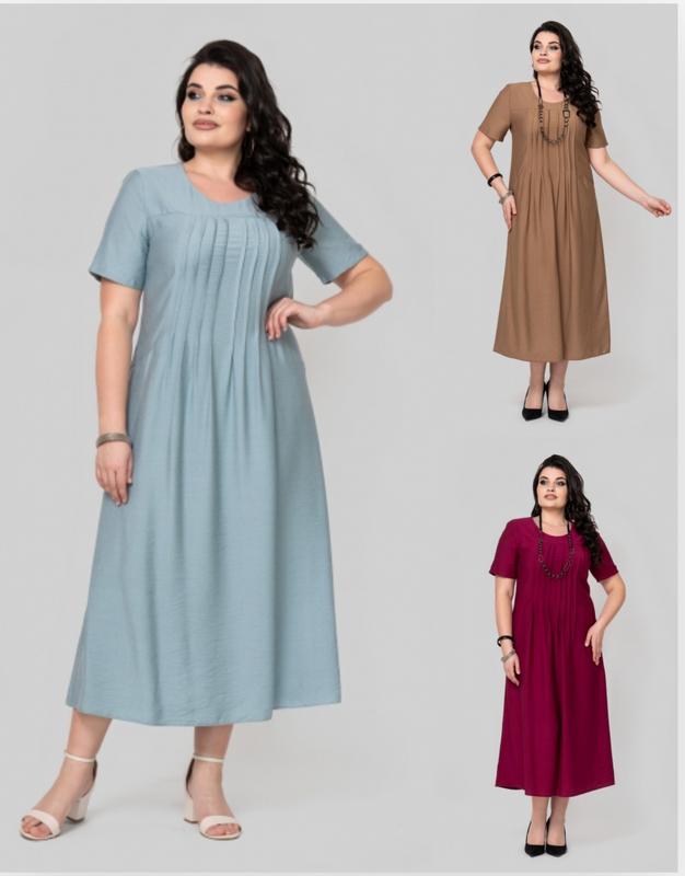 Сукня трапецевидного силуету. Выполненная из ткани лен бохо, ткань имеет смешанный состав, что дает ей ряд преимуществ, а именно: мягкость, гладкость, высокую прочность благодаря нейлону в составе, износостойкость, воздухопроницаемость, непрозрачность, низкую смываемость. Рукав втачной, одношовный. В рельефных швах полки расположены карманы, по центру выполнены застроченные склады.