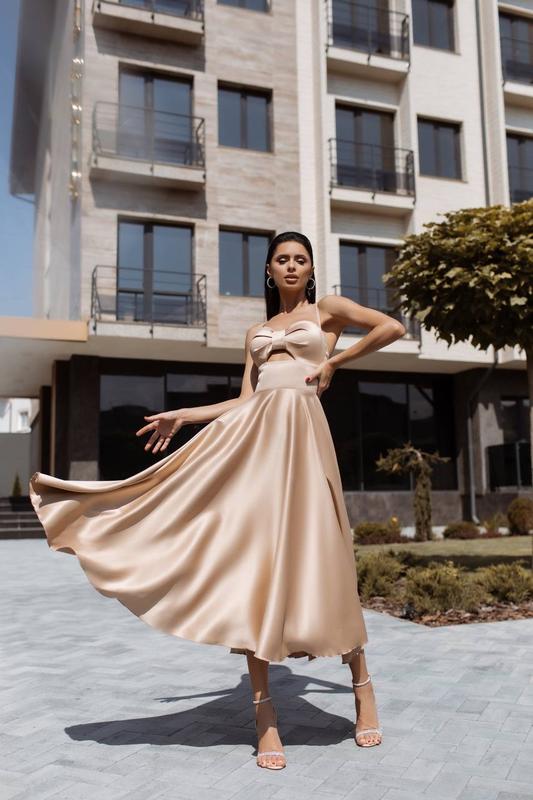 Вау-ефект гарантовано! Это платье макси создано, чтобы влюблять с первого взгляда. Легкий королевский атлас струится при каждом движении, а изящный вырез под грудью добавляет нежности и шарма. ▫️ Лиф с драпировкой и декоративным бантом ▫️ Аккуратный вырез под грудью - деликатный акцент ▫️ Вшитые пуш-ап чашки для идеальной посадки ▫️ Широкая миди-юбка создает силуэт «принцессы» ▫️ Регулируемые бретели и скрытая молния Идеальный выбор для выпускной, свадьбы подруги, вечеринки или фотосессии! Размеры: XS (под заказ), S, M L (под заказ, +200 грн) Цена: 2040 грн Арт.: ber