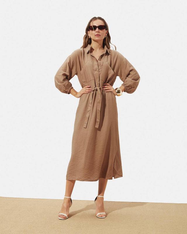 Женское платье льняное миди с длинным рукавом летняя черная белая бежевая с воротником 227...