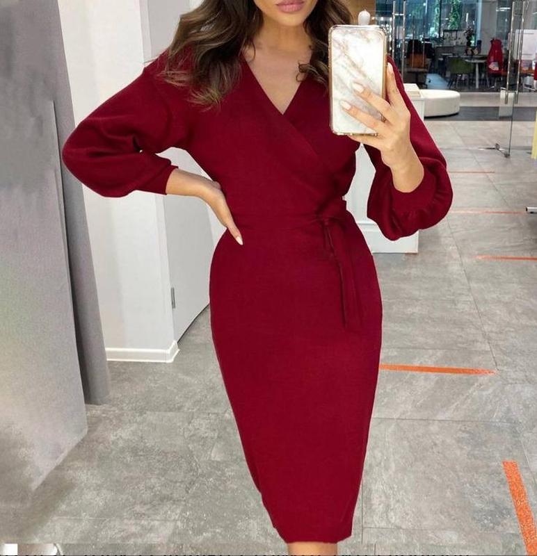 Бордовa сукня від Boohoo NIGHT Ця бордова сукня має облягаючий силует довжини міді вигідно підкреслює фігуру, а запах із поясом акцентує талію. V-подібний виріз додає витонченості, а довгі рукави з об’ємом створюють стильний і сучасний вигляд. Деталі: • Колір: насичений бордовий • Довжина: міді • Фасон: сукня-запах • Рукав: довгий, зі спущеним плечем • Пояс у комплекті • Бренд: Boohoo NIGHT • Розмір на бірці: UK 10 / US 6 / EU 38 / DE 36