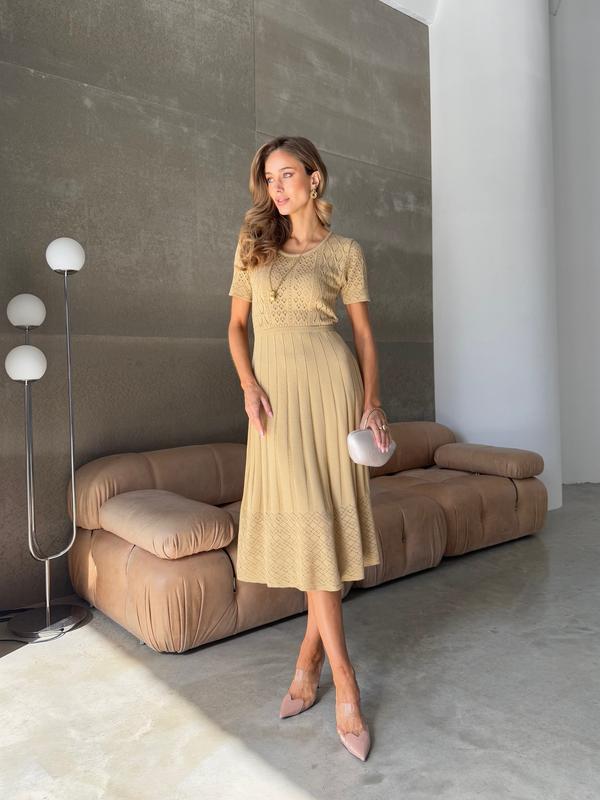 Бежева сукня зі спідницею плісе з преміальної пряжі