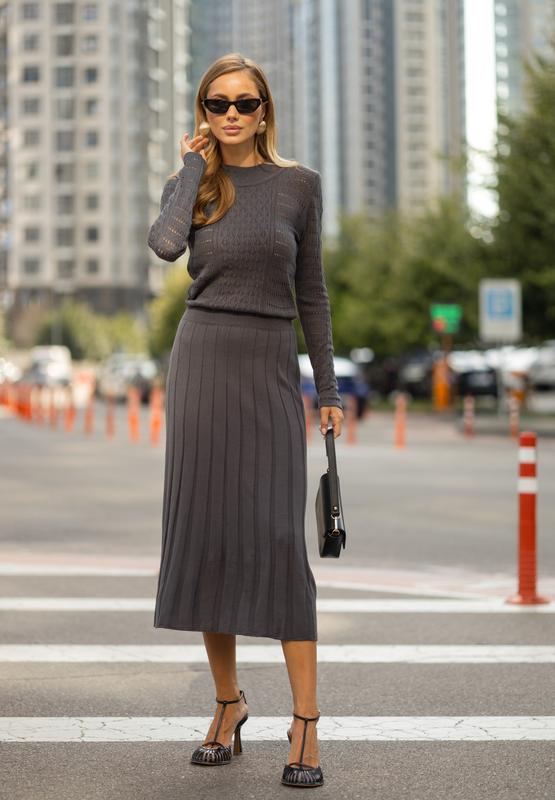 Ажурна сукня з юбкою плісе з преміальної пряжі сірого кольору