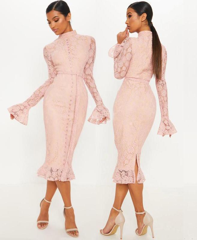 Распродажа платье prettylittlething миди кружевное ажурное с пуговицами-жемчужинами