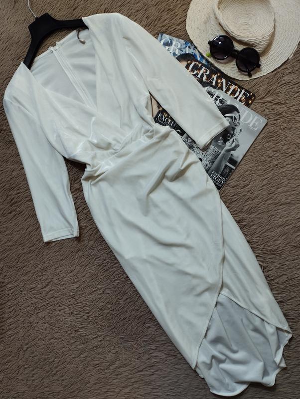 В отличном состоянии, есть несколько пятен (разводов) на фото, не очень заметно, в цене учтены. Шикарное бархатное платье миди на запах. Запах сшит. Ткань средней плотности, тянется. Размер 14/42/XL, но маломерит, смотрите по замерам Замеры (полуобхват): Грудь 43 (тянется до 50) Талия 36 (тянется до 42) Бедра 45(тянется до 52) Рукав 39 Длина от плеча спереди 80/сзада 109