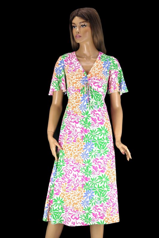 Брендовое вискозное платье миди "Primark" с цветочным принтом. Размер uk8/eur36. *Платье слегка расклешенное книзу, с V-образным вырезом, без застёжки, талия на резинке. *Состав: 100% вискоза. *Замеры: -ПОГ - 42 см; -ПОТ - 41 см; -ПОБ - 52 см; -длина - 114 см. Без дефектов. В идеальном состоянии. Параметры манекена, на котором сделано фото: -рост - 185 см; -обхват груди - 87 см; -обхват талии - 64 см; -обхват бедер - 92 см.