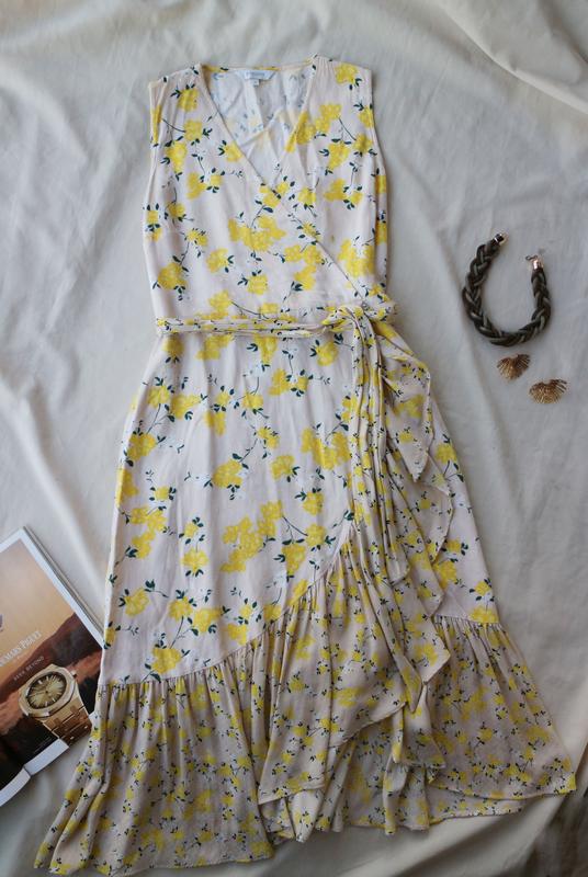 Брендовое цветочное платье-миди от principles в модном желто-массальном оттенке