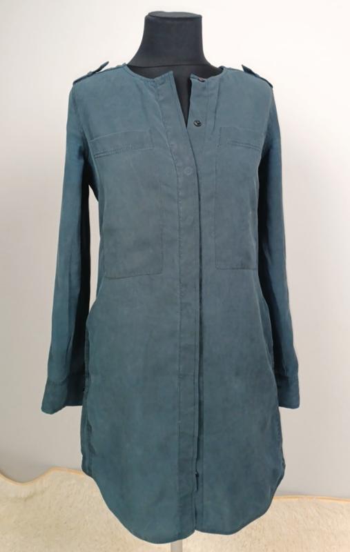 сзади длиннее пог 48 пот 44 поб 46 плечи 38 рукав 61 длина сзади 88 длина спереди 85 сзади кокетка,по поясу присобрано по талии на резинку,два больших нагрудных кармана и два боковых кармана.ткань лиоцел