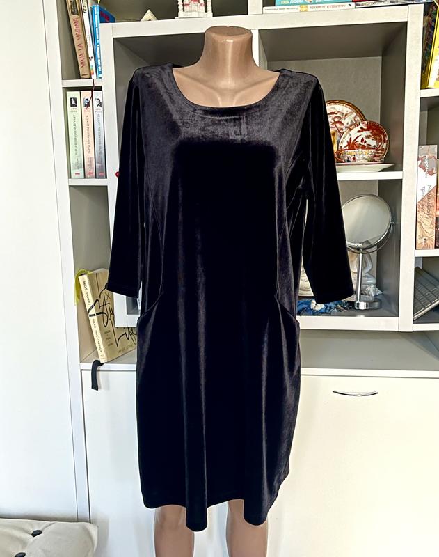 Пряма велюрова чорна сукня Ширина — 60 Довжина - 91