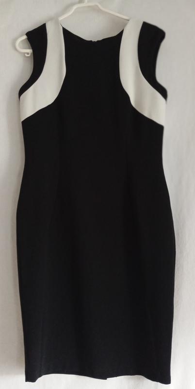 Черное платье футляр с белыми вставками. р.М,грудь по.45,плечии 50,талия 40,бедра 46,ных 43.зуда маленькая шлица