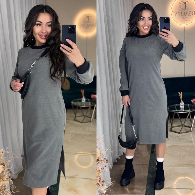 Сукня Мод 607 Тканина: пума Дуже м'яка та приємна до тіла Колір:сірий Розмір 42-44,46-48,50-52,54-56 Ціна 845 грн