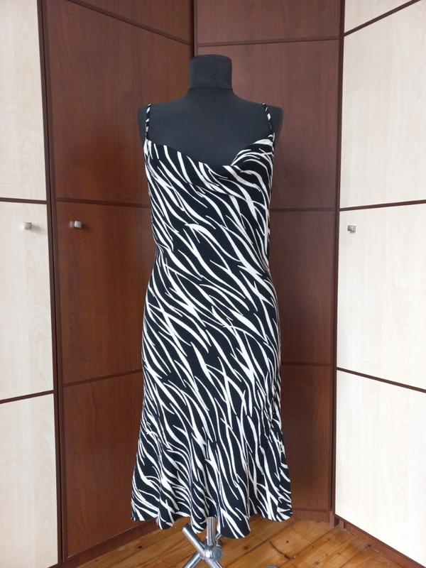 миди - платье с принтом зебры. Этикетка с брендом и размером отсутствует, ориентировочно M. Длина 97 см, бретельки регулируются, поэтому может быть немножко дольше или короче. ПОГ 46 см, ПОТ 39 см, ПОБ 51 см.