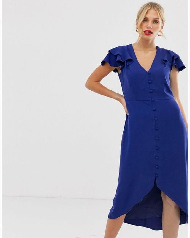 Женское платье миди цвета электрик синяя. асимметричный размер xs-s