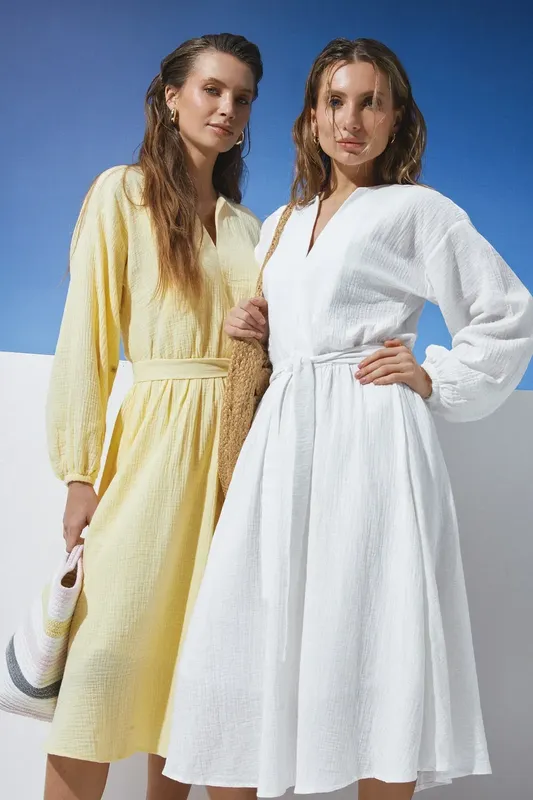 2283.6371Сукня 2283.6373 Колекція Summer 25 Матеріал муслін Колір молочнийКолір жовтий Фурнітура резинка, пояс Фасон розкльошений Сезон літо, демісезон Декоративні елементи пояс, v-образна горловина Конструктивні елементи відрізна спідниця, приспущений рукав Комплектація сукня Догляд за одягом ручне прання до 30° Довжина виробу S-M = 119 см, L-XL = 121 см, XXL-3XL = 123 см Довжина рукава S-M = 52 см, L-XL = 52 см, XXL-3XL = 52 см