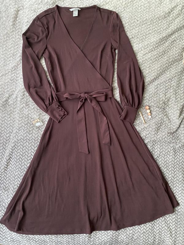 Сукня з довгим рукавом та поясом. XS. Довжина 108см. По талії 30см. По груді 43см. Рукав від плеча 57см.