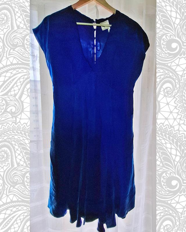 Приятная к телу как объятия, эта ткань носит название "мокрый шелк", хотя на самом деле это особый способ обработки вискозы. На ощупь действительно как шелк: очень нежная, немного охлаждает в жару и переливается разными оттенками синего на солнце. Вашему вниманию отличное платье White stuff, 10 размера, с завышенной линией талии, обтянутыми тканью пуговицами на спинке, оборкой внизу. Замеры полуоборота: Плечи 46 Груди 47 Талия 49 Длина 103 Состав: 59% купро (мокрый шелк), 41% вискоза Состояние: новая без бирки Отдам при 460 грн. #Княсиня #суекнямокрышелк #whitestuff