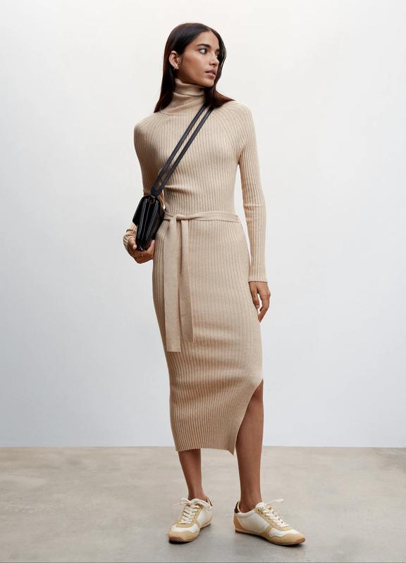 Трикотажное платье миди в рубчик от Mango. Базовое, но в то же время очень элегантное платье, которое станет любимицей вашего гардероба. Модель выполнена из мягкого эластичного трикотажа в рубчик, идеально садится по фигуре и комфортна в носке. Цвет: светлый беж Фасон: приталенный, длина меди Длина платья: 120 см Размер на бирке: S (хорошо тянется — подстраивается под фигуру) Ткань: мягкая, эластичная, приятная к телу Состав: 50% вискоза, 29% полиэстер, 21% полиамид Детали: съемный пояс, высокий воротник стойка, разрез сбоку для удобства и акцента Идеальный вариант на каждый день, в офис или для создания стильного casual-лука с кроссовками или сапогами.