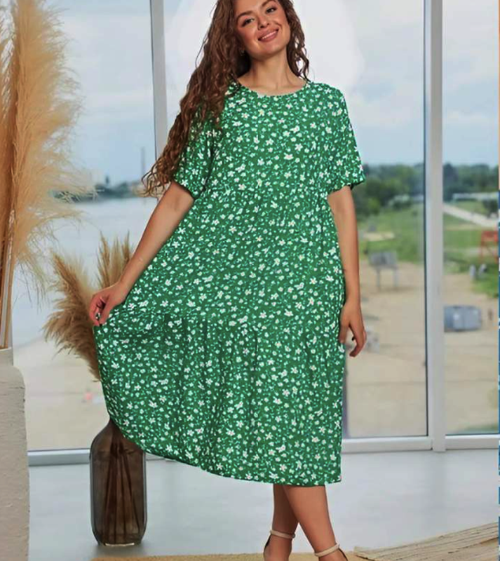 Легке та жіноче плаття вільного крою . Сукня складається з ліфа та спідниці у два яруси . Виріз горловини круглий , короткий рукав . Кішень немає . Тканина дуже м'яка та приємна до тіла . Ідеальний образ на літні спекотні дні . Напів об'єм грудей 47 см. плечі 37 см. довжина рукава 25 см . довжина сукні 113 см . матеріал штапель склад 80% бобовна , 20%полієстр Розмір : S Відпоавляю Нова пошта або Укр. пошта , протягом доби, після оплати на карту .