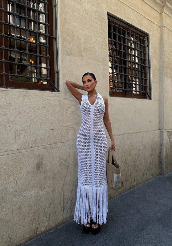 🌶️Невероятно красивая новинка 🌶️ Нереальные ажурные туники с бахромой 🔝 Арт. 2772 🔍 Высокое качество, Турция 🇹🇷 Размер единый 42/46 Черный и белый Ширина 38-48 см Длина с бахромой 133 см Состав : 70% cotton, 30 % polyester 🏷️ 1799 грн