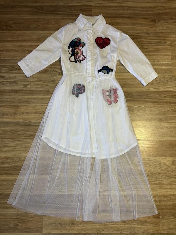Стильное платье с вышивкой и фатиновой юбкой. Размер подойдет на S/M. Состояние нового.