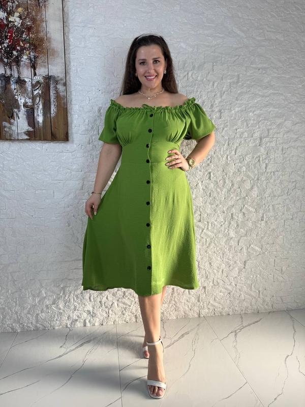 Платье Модель 1054vl Размеры : 46-48,50-52,54-56,58-60,62-64 Цвета: лиловый, серый, киви, джинс, фисташка, розовый, малина, голубой, бордовый, черный, шоколад. Удлиненное платье ( ниже колен ), от разной талии, от талии свободного кроя, застегивается на черные пуговицы. Горловина регулируется кулиской на канате (можно затянуть на груди или распыли и оголить плечи ). Рукава на резинке. На груди сборка, что добавляет дополнительно шарма модели. На спинке завязки в виде корсета, можно регулировать объем талии и груди. Параметры модели -балталл Инны ОГ108, ОТ86, ОБ110, рост 165см, на ней одет размер 50-52 Замеры по изделию (получайтесь по размерной таблице): Размер 46-48: Объем груди 102-108 Объем талии 84 Объем бёдер 140 Длина рукава 30 Длина по спинке 104 Размер 50-52: Объем груди 112-120 Объем талии 90 Объем бёдер 148 Длина рукава 32 Длина по спинке 104 Размер 54-56: Объем груди 120-128 Объем талии 100 Объем бёдер 158 Длина рукава 34 Длина по спинке 104 Размер 58-60: Объем груди 128-136 Объем талии 112 Объем бёдер 168 Длина рукава 36 Длина по спинке 105 Размер 62-64: Объем груди 136-144 Объем талии 122 Объем бёдер 178 Длина рукава 38 Длина по спинке 105