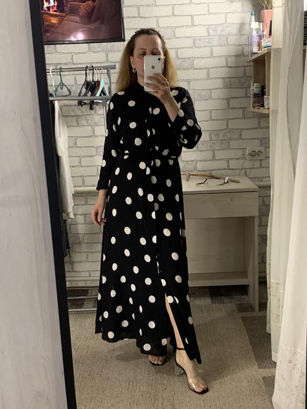 Сукня у великий горох в ідеальному стані! Вічна класика👌 100% віскоза Розмір L, краще на М Плечі 41, по грудях 51, талія 40, стегна 47, рукав 45, довжина 133 см