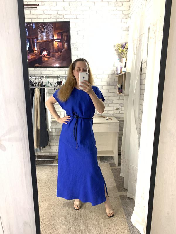 Яскрава лляна сукня в ідеальному стані від Автограф! Льон плотний, гарно тримає форму! Красива зборка на одному плечі та два делікатних розрізи по боках👌 100% льон Розмір вказаний XL По грудях 57, стегна 56, довжина 134 см