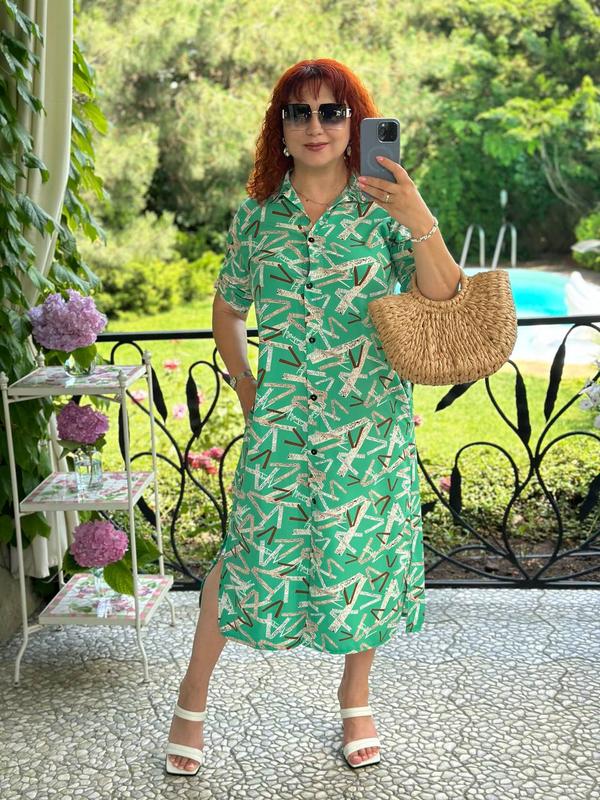 Сукня 3709 Тканина: софт. Цвет: сирень, зеленый, желтый, черный, белый. Размеры: 48-50, 52-54, 56-58, 60-62, 64-66. Длина платья: 123, 124, 125, 126, 127 см. Длина рукава: 37, 38, 39, 40, 41 см. Обхват рукава: 38, 40, 42, 44, 46 см. Замеры готового изделия: ✅48-50 ОГ 110 ОТ 120 ОБ 128 ✅52-54 ОГ 118 ОТ 128 ОБ 136 ✅56-58 ОГ 126 ОТ 136 ОБ 144 ✅60-62 ОГ 134 ОТ 144 ОБ 152 ✅64-66 ОГ 142 ОТ 152 ОБ 160 На модели размер 48-50. Рост 170 см. ОГ 107 ОТ 84 Ос 107 см Стильное платье-рубашка из софта с принтом ( ткань не тянется). Силуэт платья довольно свободный, в виде трапеции, воротничок отложной. Застегивается на пуговицы по передней планке. Рукав 3/4, можно укорачивать с помощью специального детали на пуговице. По бокам платья разрезы, в боковых швах обработаны карманы. #Одеждукраина #женовременность Внимание! По данному товару есть отправка: - Укрпошта - повна оплата на карту - Новая почта - полная оплата или наложка с подпиской 150 грн Безопасной оплатой этот товар не поставляем! В случае наложки - меряете на поште, если не подходит - отказываетесь. Предписание при отказе не возвращается. Если достал товар из почты домой нет.