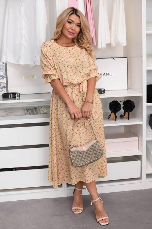 Женское платье миди цветочное из штапеля больших размеров платья батал #2172