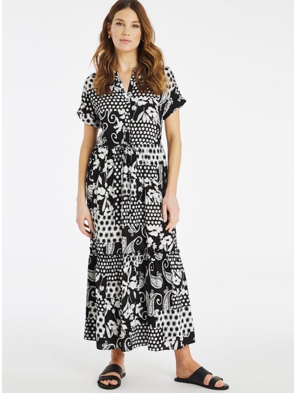 Великолепное ярусное платье свободного кроя, но на талии есть кулиска, состояние новой вещи. Пог. 66, талии 64, бедра свободно, рукав от начала горловины 40, длина 135.