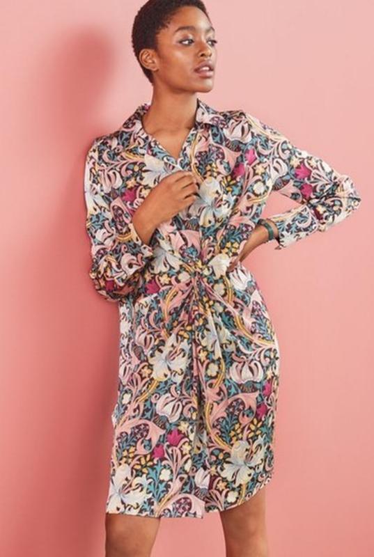 Next Morris &Co платье - рубашка из искусственного шелка в размере S, подойдет на М, интересный крой, который скрывает живот, подойдет беременным. Полуобхват груди 53 см Длина по спинке 92 см талия полуобхват 52 см бедра полуобхват 53см Стан идеальный, новой вещи, есть дополнительная пуговица в пакете.