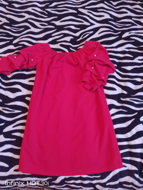Платье красное с бусинками на рукавах. Рукава спускаются