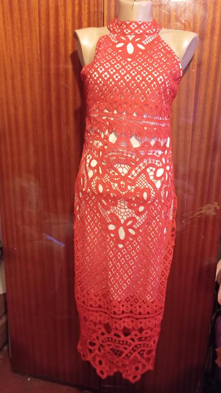 плаття міді ззаді на замочку червоного кольору спереду ажур знизу беж ззаді повністю червоний колір дуже гарний на тендітну дівчину високого росту