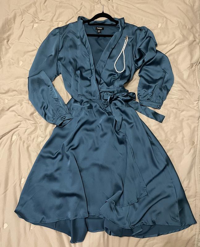 Сукня атласна на запах, смарагдового кольору, розмір L
