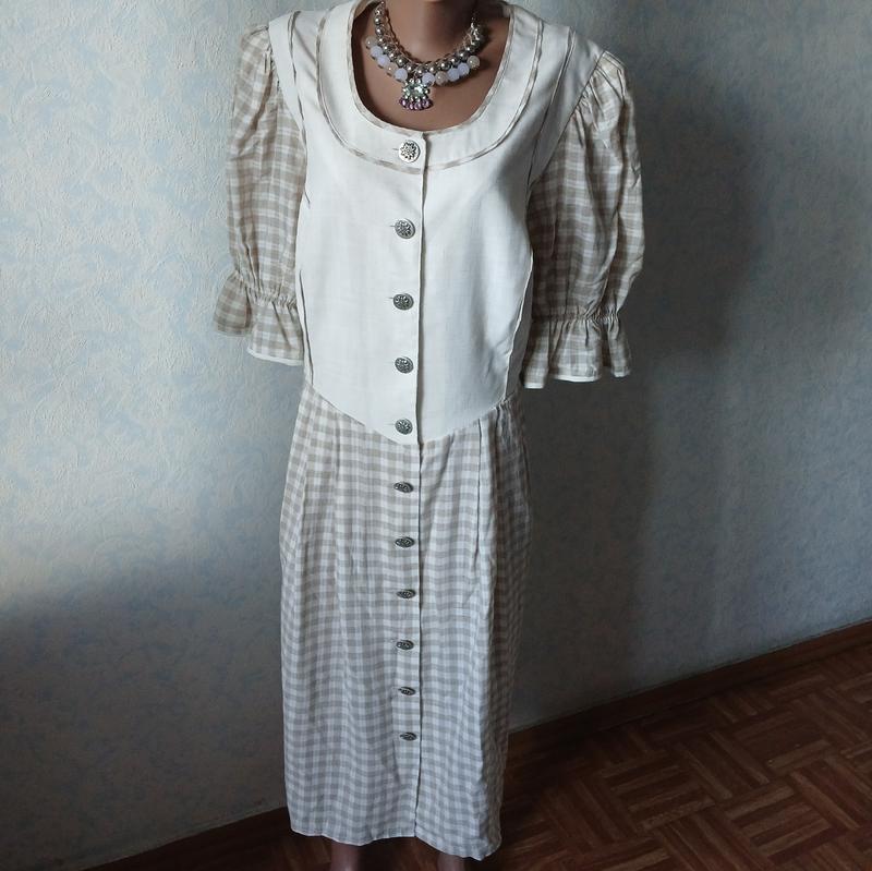 Платье - халат женская, баварская, дырдль,с короткими рукавами, в идеальном состоянии, большого размера. Замеры изделия: пог 64 см,пот 55 см, постегон- свободно,длина изделия: 118 см,длина рукава:43 см.Этикетка с составом ткани отсутствует, на вид ткань - хлопок с полиэстером, мягкая и приятная на ощупь, подкладка- полиэстер.