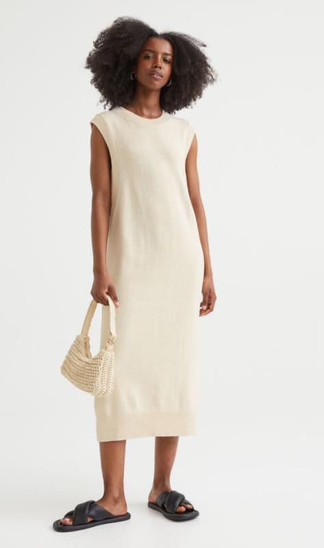 Мягкое трикотажное платье без рукавов длиной до икр, с круглым вырезом и разрезами по бокам. Резинка по горловине, проймам и подолу. Без подкладки. Длина: Меди Длина рукава:Без рукавов FiT: Свободный крой Декольте: Кругла горловина Размер Л Склад: 60% КОТОН, 40% АКРИЛ ПОГ - 56см ПОТ - 56см ПОБ - 59см Плечи - 40см Длина - 121см