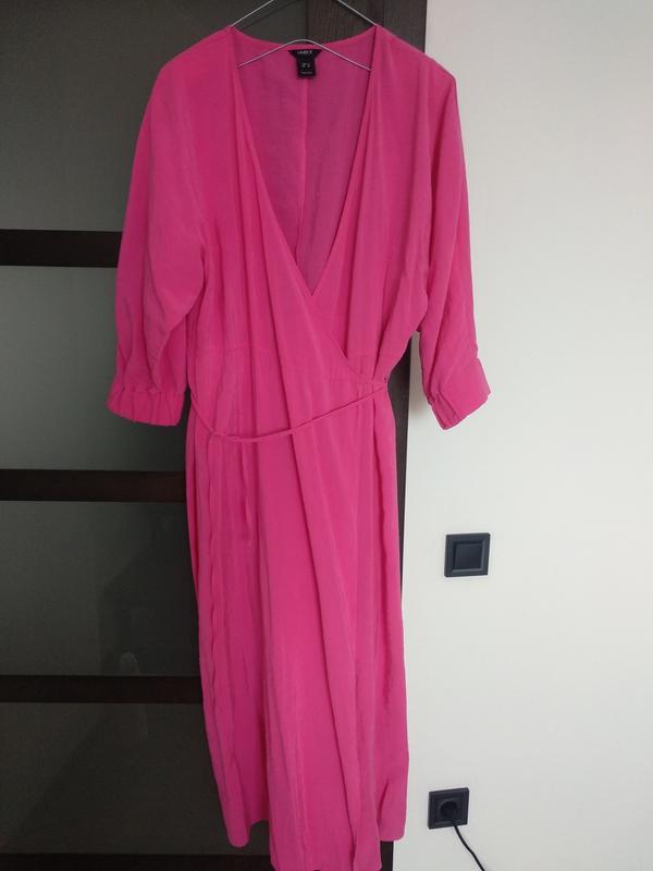 Платье миди от бренда Lindex. Очень красивый розовый цвет, тренд этого сезона. Размер М. Платье на запах, юбка слегка расширена книзу. Очень красивый цельнокроеный рукав с крупной резинкой. Ткань тенсел, она очень приятна к телу и имеет бархатный эффект. Все замеры сброшу дополнительно