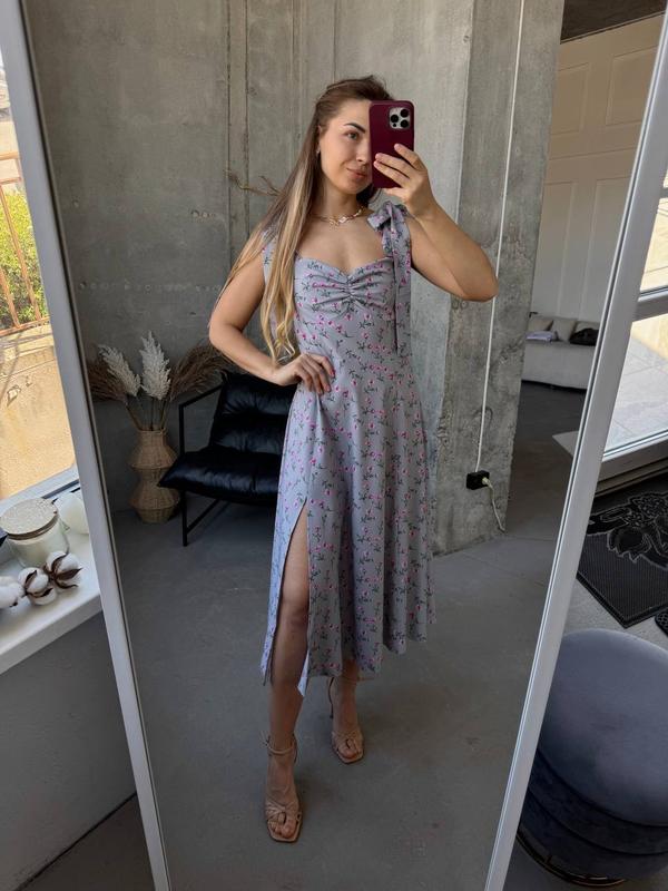 Жіноча літня сукня міді на завʼязках бретелях мокко сірий