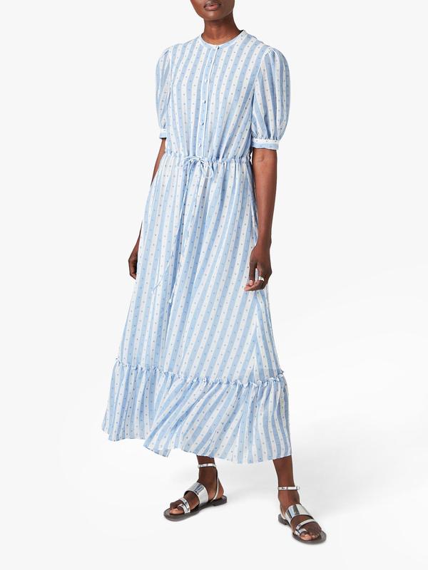 Неймовірно ніжна сукня з фактурнрї тканини від бренду Jigsaw. Сукня має багаторівневий поділ, який надає романтичного відтінку, і тонку зав'язку на талії, щоб структурувати образ. Розмір вказаний 16/12/44( фактично підійде на М/L, на фото вдягнене на S-теж чудово виглядає) Стан ідеальний