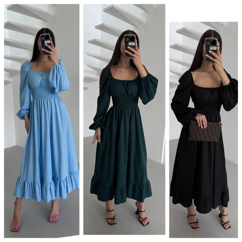 Модель 847 Женское платье Размерный ряд S,M,L,XL Тканина софт Цвета голубой, мокко, зеленый, бордовый и черный Талия резинка Очень классная, стильная и универсальная модель Подходит под разную обувь Супер качество